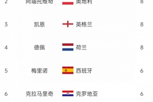 本届欧洲世预赛射手榜: