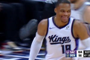 针锋相对!威少底角三分轰进 约基奇弧顶三分迅速回应